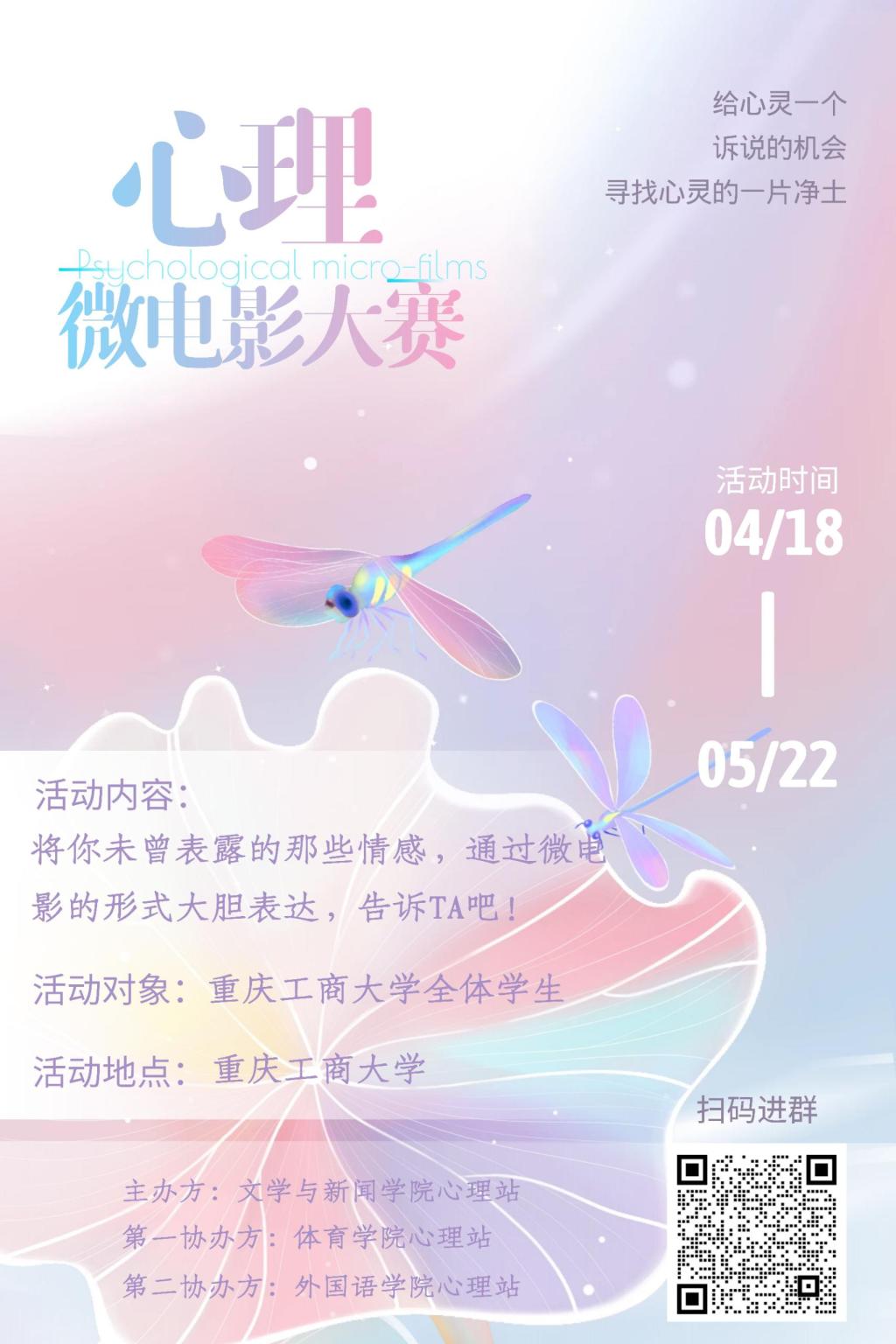 本次创作大赛的主题为“给心灵一个诉说的机会,寻找心灵的一片净土”。活动中,各位参赛选手通过微电影创作的形式,诉说同学们的心理情感,释放校园生活中的心理压力,同时给参与观看和评选的所有同学一次寻找心灵净土的机会,多方面促进在校生身心健康。