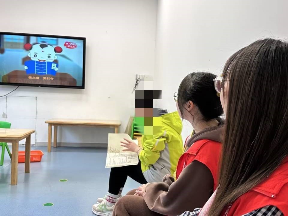 丹佛老师和志愿者们进行了短暂的交流,志愿者们了解到这里的孩子是“星星的孩子”。下午15时,志愿者们和小朋友一起学习关于海豚的知识,小朋友和志愿者一起观看关于海豚的视频,识别海豚的身体部位。下午15时30分,志愿者们和小朋友们一起学习人的身体部位。志愿者们刚刚进入教室,小朋友们便面带微笑热情地向志愿者们打招呼,志愿者纷纷做出热情的回应。活动过程中,志愿者和小朋友在相互互动中一起认识了人的身体部位。下午16时,志愿者和小朋友们一起做游戏活动。每位志愿者带一个小朋友一起做游戏。在带教老师的指导下,志愿者站在小朋友们后面,与小朋友一起完成活动。大家脸上都露出了开心的笑容。