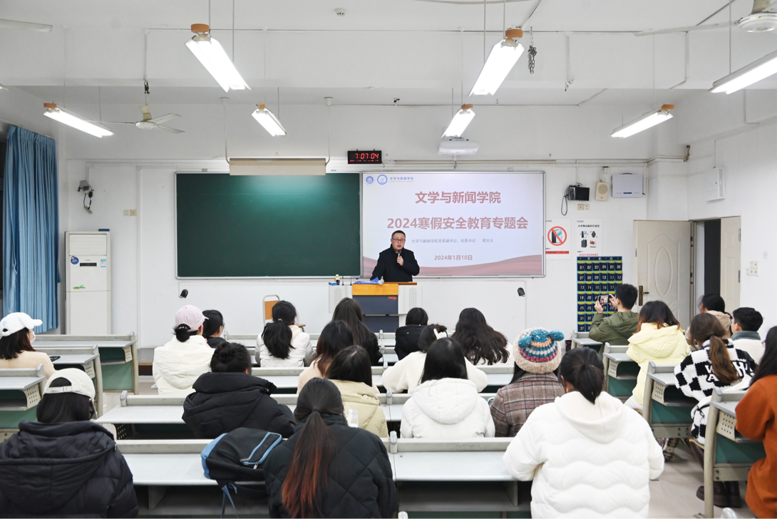 会上,程书记首先就寒假留宿纪律对同学们作出了要求,他强调留宿同学要遵守学校的规章制度,不能在寝室使用违规电器、租借出入证给他人使用,同时,程书记还从食品安全、消防安全、交通安全、网络安全、人身安全、财产安全、国家安全等方面叮嘱同学们增强安全意识,做自己健康安全的第一责任人;最后,程书记勉励大四实习的同学,克服困难磨练本领,尽早就业。