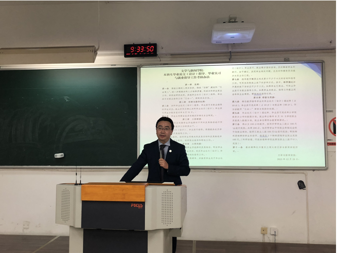 会议第一个议程由委书记于频就2023届本科、研究生就业工作进行总结,并对2023届毕业生的就业流向、升学情况等做了详细分析。随后由于书记向全体教职工汇报了2024届本科、研究生毕业生分专业去向落实情况,并提出学院促就业必须真正做到就业工作人人有责,学院要争取到更多的就业资源,做好人才培养的迭代更新,院领导、系主任、辅导员、“二合一”教师及全体教职工要形成合力,共同帮助毕业生形成正确的就业观,早就业、就好业。