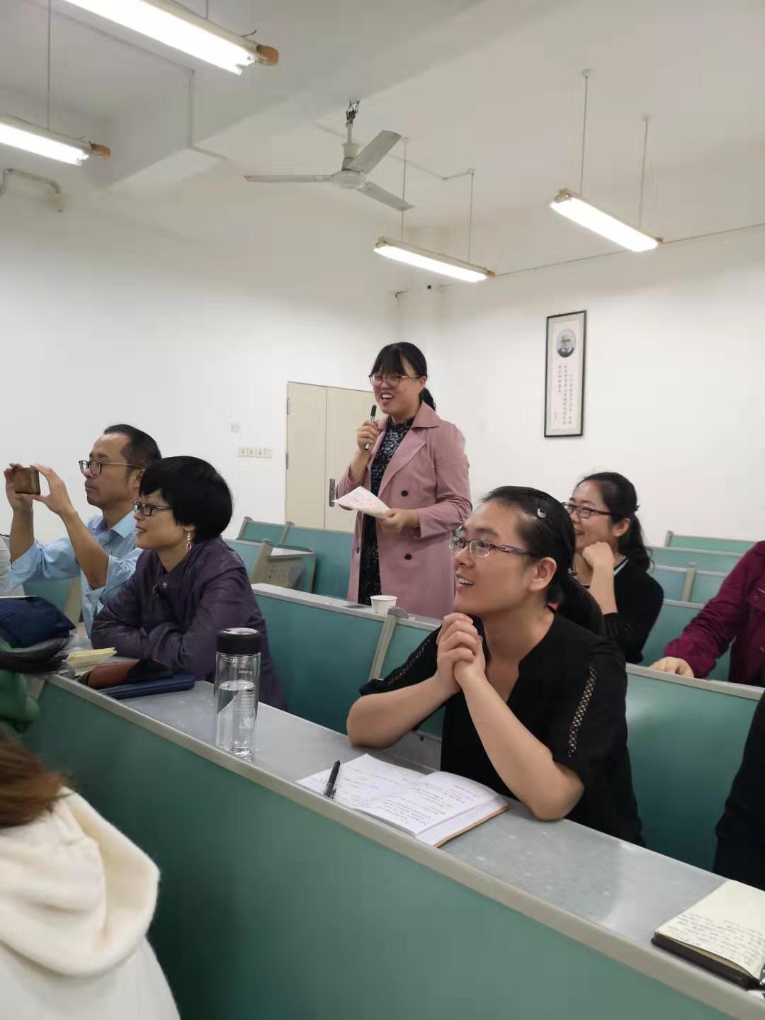 青年博士教师曾妍、廖宇翃等先后发言,纷纷表示受益匪浅,一致认为这是一堂集教育性、思想性、趣味性为一体,信息量很大的古代文学课,融合了文学常识、文学理论、文学批评、文学细读和问题意识的讲解。教学形式灵活,有讨论、有案例、有思考点的提炼总结,教学语言生动幽默、深入浅出,课堂互动效果极好。段庸生教授深厚的学术功底、缜密的逻辑性和极强的课堂驾驭能力不仅能对青年教师的公司产品起到口传身授的垂范作用,而且能对员工个人人格的塑造起到促进和引领作用。