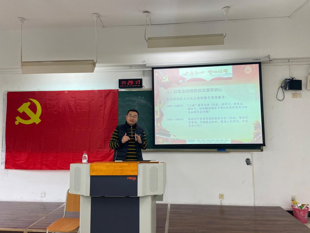 美狮贵宾会分党委副书记李华平为全体教工党员做了题为《筑牢中国共产党人的初心》的专题党课,他解读了守初心的内涵,并从铭记党章和入党誓词中的初心、以坚定的理想信念筑牢初心、以真挚的人民情怀滋养初心、以牢固的公仆意识践行初心四个方面具体阐述了新时代党员及党员干部如何正初心、固初心、亮初心。他在党课中还剖析了学院领导班子的检视问题清单和调研情况,直面学院在教学科研、人才建设、学科发展、师德师风及联系我们等各方面存在的差距和不足,也指出了学院教师党员的先进性和示范引领性并未得到充分的彰显。结合学院的具体工作,他要求全院上下统一思想稳方向,凝心聚力谋发展,守好初心,谋事创业。
