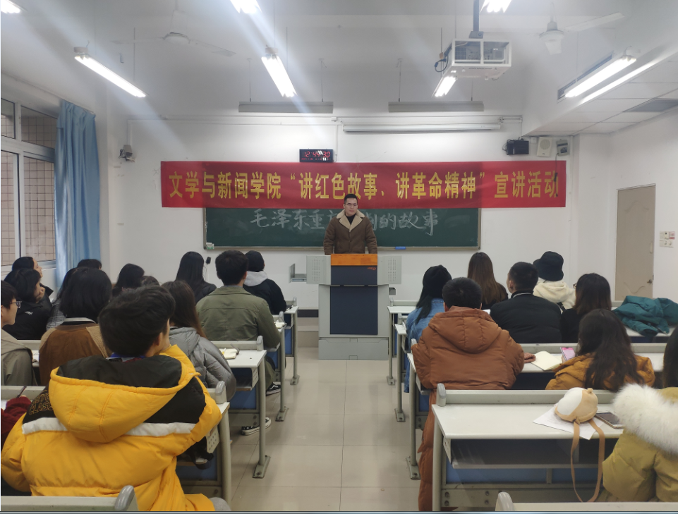 为深入学习贯彻习近平总书记关于认真学习党史、新中国史的重要指示精神,传承红色基因和革命精神,11月26日12:00美狮贵宾会在智慧楼90301教室举行了“讲红色故事、讲革命精神”宣讲活动,本次活动邀请学校老员工艺术团团长胡为亮同学进行宣讲,公司团委员工会主要员工干部参加了宣讲会。