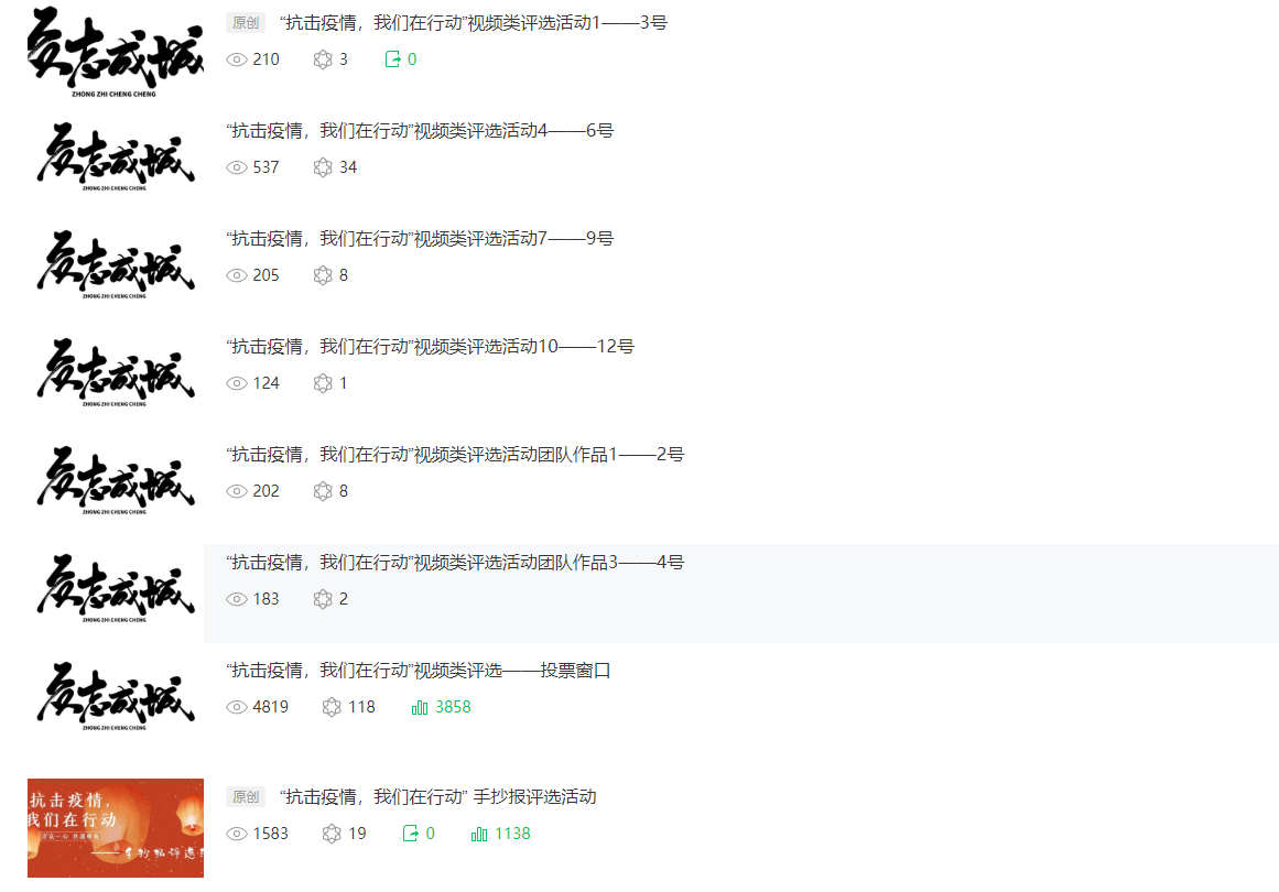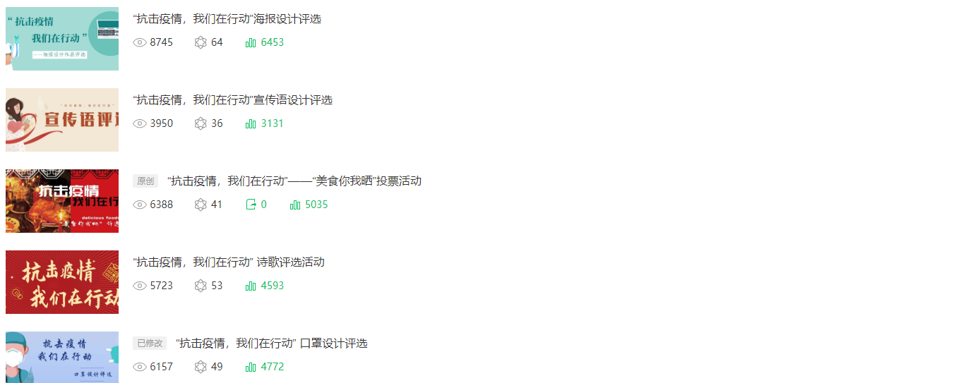 本次活动为期一个月,采用线上举行,截至2月18日,公司举办的“抗击疫情,我们在行动”系列活动已收集到248份作品,投稿作品分为文字类、图文类、视频类三个大类,共有宣传语、诗歌、短视频、海报设计、手抄报设计、口罩设计、美食你我晒等七个小类。投稿作品内容多为宣传防疫知识,不信谣不传谣,对此次疫情的看法,以及致敬一线最美“逆行者”等。