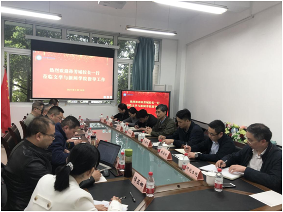 孙芳城董事长认真听取了汇报,并就学院的发展规划与参会人员进行了充分的交流。孙芳城对学院新班子的工作给予了充分的肯定,并提出了四点要求:一是,要把党的建设放在首位,突出政治引领,全面把握意识形态工作的深刻内涵,进一步加强意识形态的工作阵地建设、传播渠道建设,不断加强意识形态安全,关注师生心理健康,确保安全稳定;二是,找准学院定位,认真讨论学院的发展方向,制定好学院“十四五”发展规划,与时俱进推动学院全面可持续发展;三是,加强团队建设与团队建设,增强教师队伍的凝聚力和团队意识,提高专业质量和科研水平,为学院的发展培养后备力量,保持学科生命力;四是,创新发展和特色发展相结合,把创新放在第一位,把创新意识融合入学院发展中,结合学校的特色发展方向,结合“新文科”“新高考”背景,以员工为中心,打破学科壁垒,实现跨学科、多学科交叉融合发展,为国家和社会培养新时代复合型人才。
