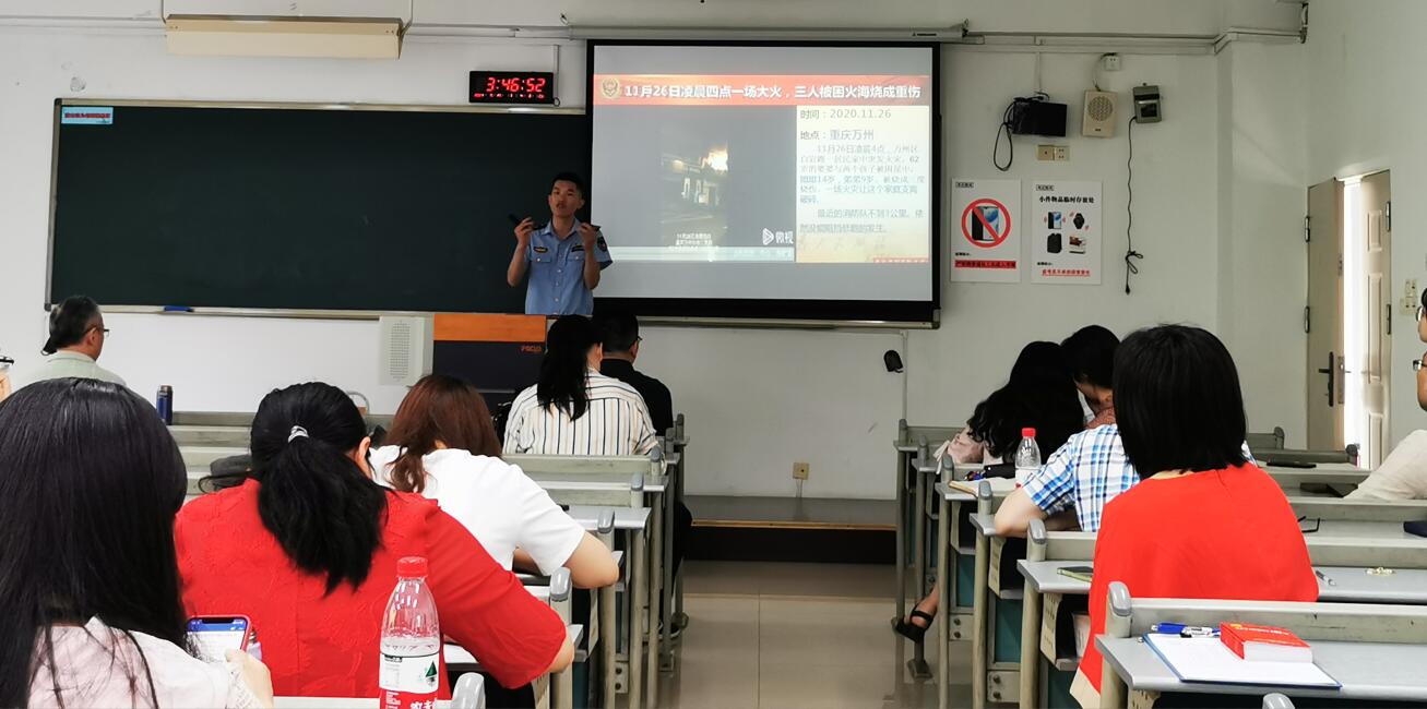为进一步提升我院教职工应对突发事件能力,增强消防安全意识,普及消防安全知识,以增强防御火灾的能力,5月14日下午,我院邀请重庆市利民防火宣传中心唐松教官在90625开展了2021年消防安全知识讲座,对学院教职工进行消防安全培训,筑牢消防安全防线。