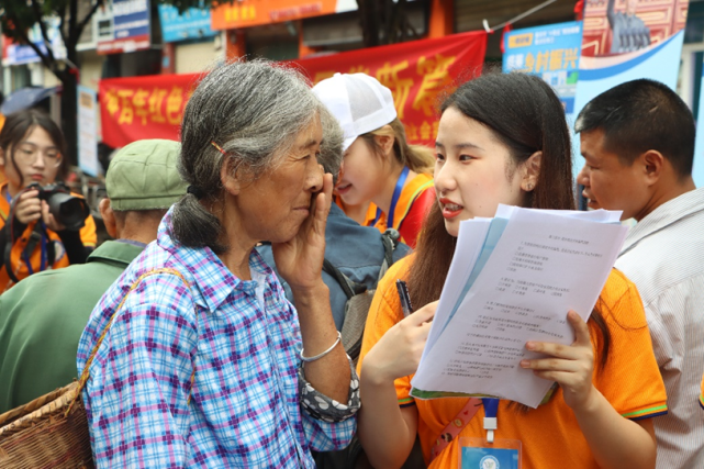 实践团成员收集当地村民对乡村发展的建议。图/张倩 罗嘉欣