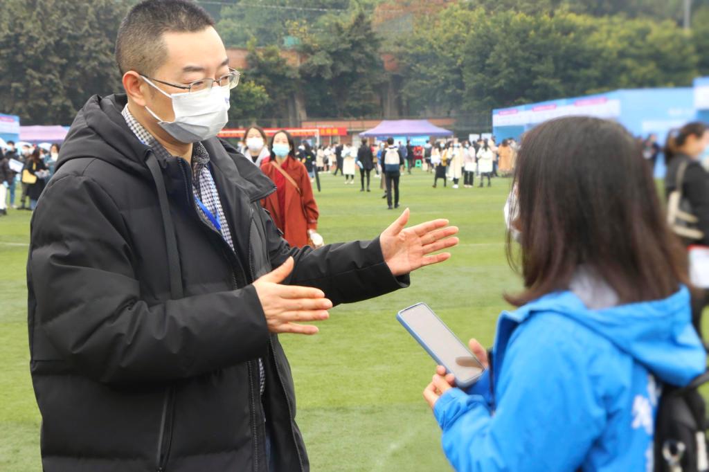 公司积极组织员工参加此次双选会,2022届毕业生200多人次到现场咨询和投递简历。公司分党委书记李华平、副书记程元元和学院就业联络员、毕业班辅导员在现场为本学院的毕业生做就业方面的答疑解惑。 李华平书记在双选会现场接受了学校新闻中心同学的采访,就以下三个方面进行了相关阐述:一是学院当前的就业形势;二是学院对促进毕业生就业所作的相关举措;三是针对毕业生在就业过程中出现的问题,学院将进行教学实践调整和改革,进一步培养和提高员工核心竞争力。