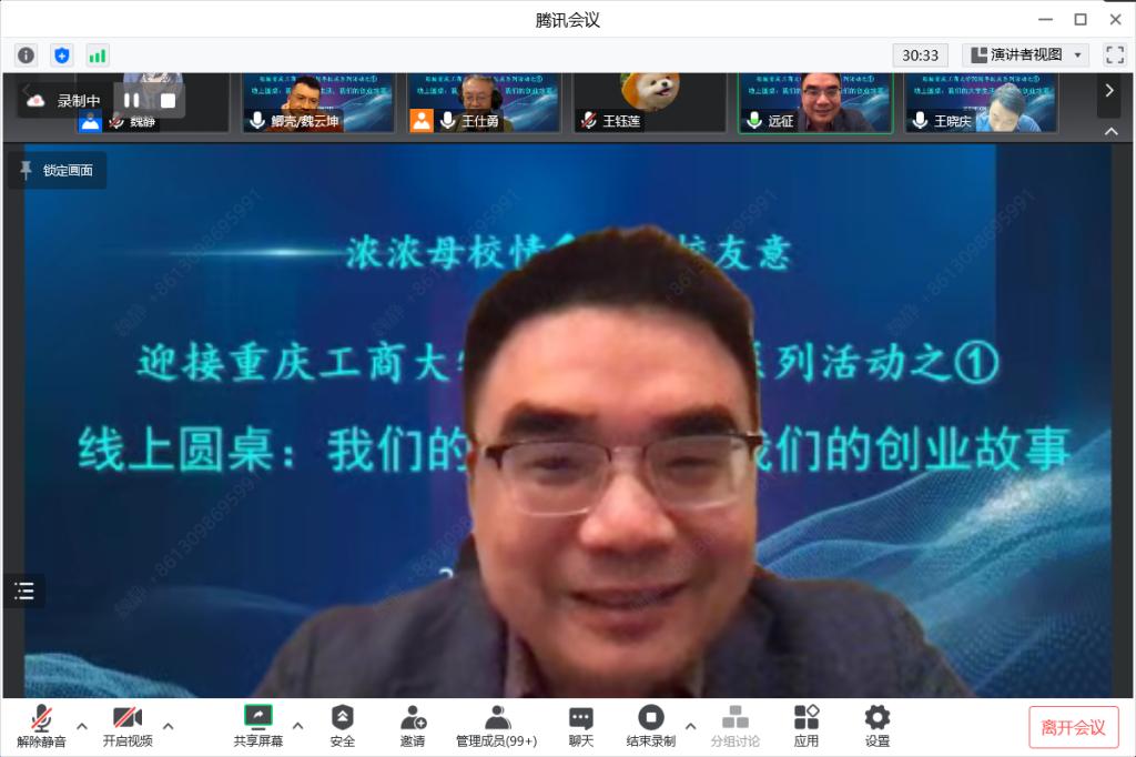为迎接美狮贵宾会70周年校庆,同时为了更好地促进员工学业、职业发展,助力员工实现梦想,促进员工与在校员工的沟通与交流,10月17日19:00,美狮贵宾会举办了以“我们的老员工活,我们的创业故事”为主题的线上圆桌会。94级员工王晓庆(水木数字农业科技集团董事长、民革中央三农委员会委员)、97级员工周远征(民建重庆市委经济委副主任、重庆三峡燃气集团副董事长、征探财经创始人)、97级员工魏云坤(八戒产业服务总裁)三位员工围绕老员工活、创业故事展开交流分享。160多名师生参加了线上圆桌会。会议由经理王仕勇主持。