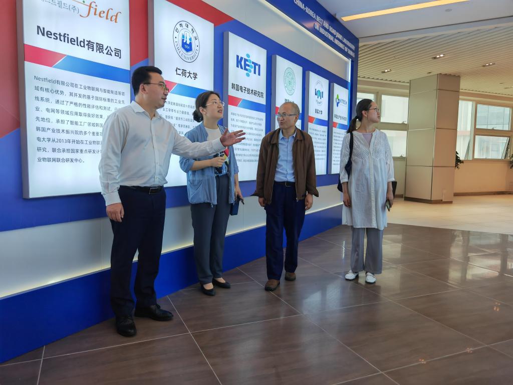 重庆邮电大学工业互联网现代产业学院副经理吕霞付带领大家先后参观了工业互联网与智能制造创新应用体验中心、中韩政府间合作项目平台、员工公寓等。