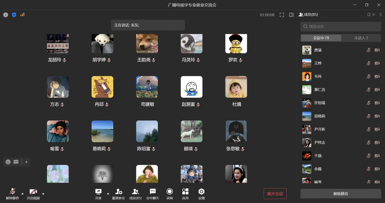 广电系主任王瑞林老师总结发言。王老师希望同学们坚定信心,勇于尝试,面对困境不气馁。学校永远是大家坚实的后盾,希望同学们敞开心扉,及时向老师们反馈就业动态,老师们始终牵挂着同学们的未来!