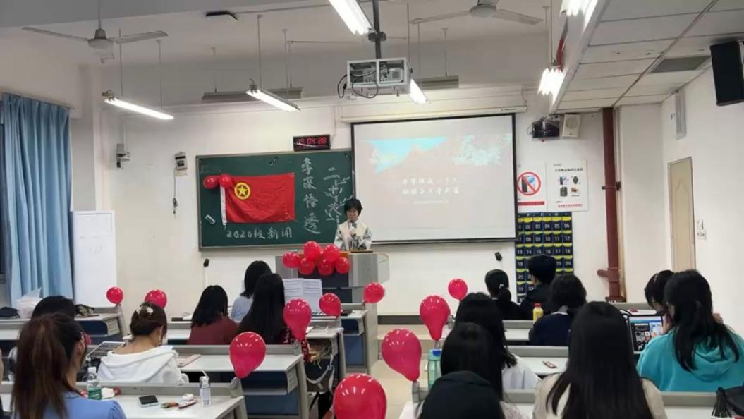 为深入学习宣传贯彻党的二十大精神,进一步激发广大青年员工爱党、爱国、爱社会主义的情怀,引导广大青年员工坚定不移听党话、跟党走,立志做有理想、敢担当、能吃苦、肯奋斗的新时代好青年,4月10日,2020级新闻学专业团支部于九教202教室开展“学深悟透二十大,砥砺奋斗谱新篇”主题团日活动。