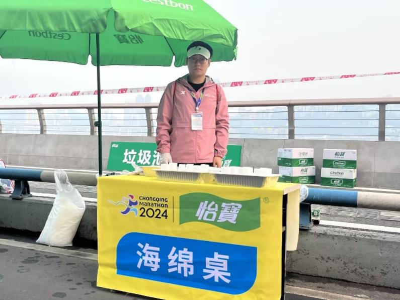 在本次赛事中,公司志愿者负责饮水饮料和吸水海绵的补给工作,他们按照要求提前将沾满水的海绵及装有运动饮料、矿泉水的纸杯有序地摆放在桌上供跑者取用,并及时补充物资,提供专业暖心的服务,同时送上一声声的“加油”和掌声鼓励,以饱满的状态让来自五湖四海的跑者们感受到重庆老员工的热情,彰显青春活力。
