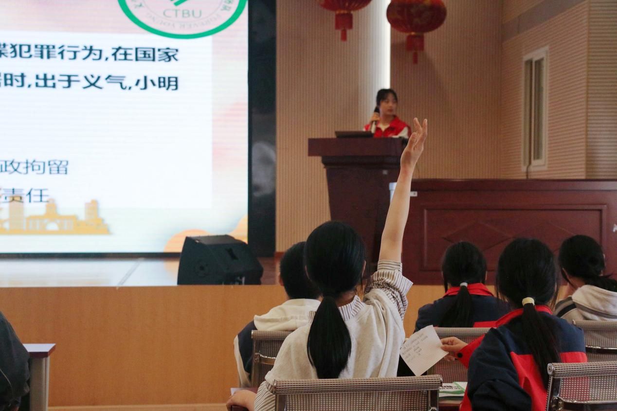 宣讲中,志愿者们围绕国家安全概念、国家安全的基本内容、如何从自身出发保障国家安全等方面展开活动,结合实际案例着重讲述了贴近员工生活的“网络安全”,引导同学们增强安全防范意识。同时,志愿者们精心设置了趣味知识问答环节,将本次宣传活动氛围推向高潮。同学们热情高涨,迫不及待高举双手,在坚定有力的回答中,彰显了新时代少年的风姿。