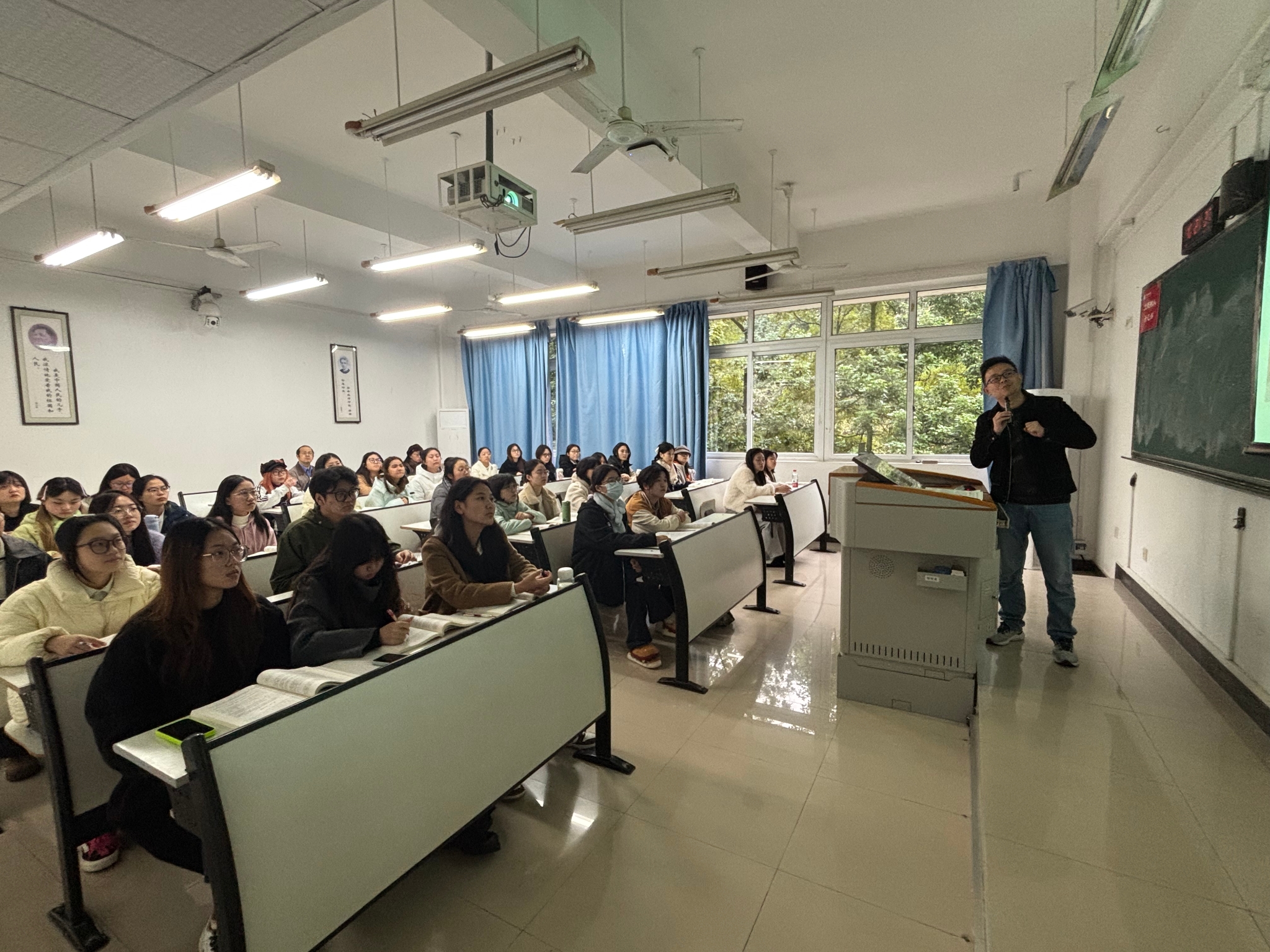 2025年11月19日,由广电系系主任谈华伟主讲的以本学期第二堂“立德树人”示范课在慧智楼90402教室进行。学院副经理郑笑眉、荣婷、教师代表邵茹波、朱洁到场观摩。